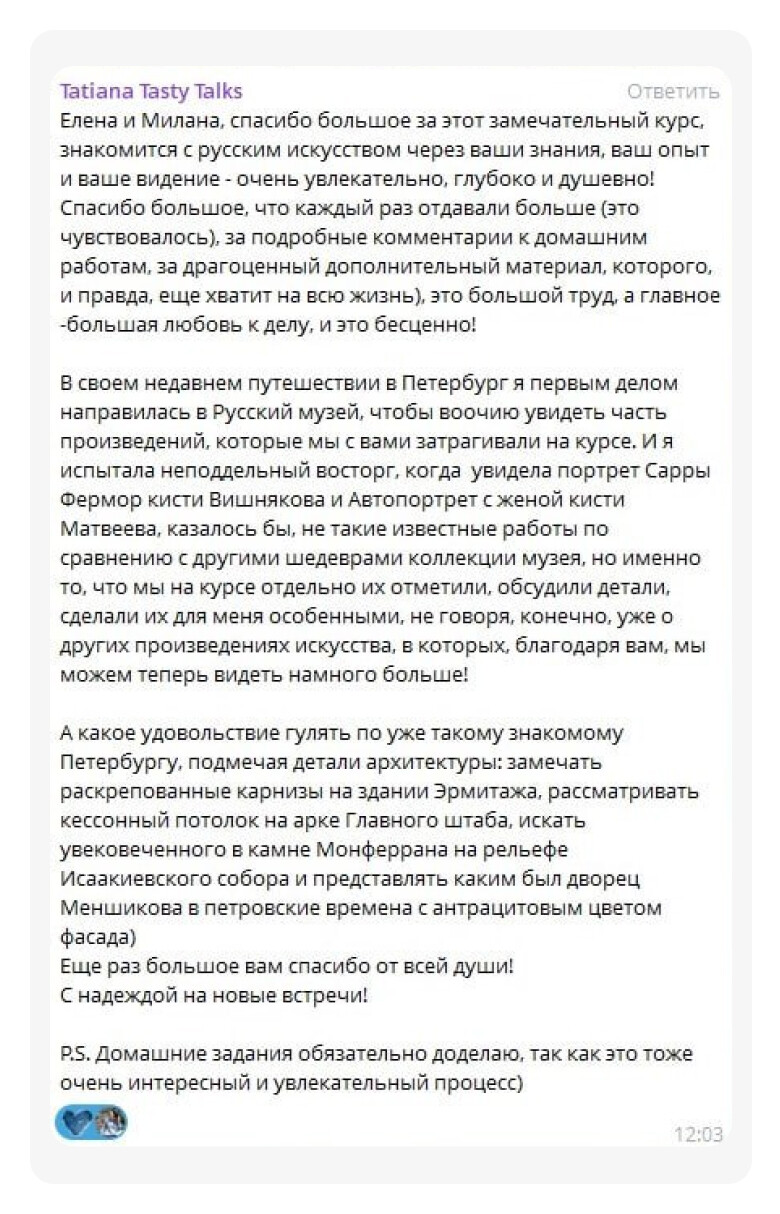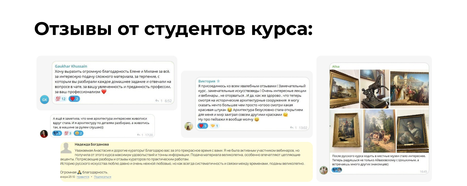 Этот курс позволит вам составить глубокое и всеобъемлющее представление о родном искусстве, подготовиться к поездкам по России и к посещению главных музеев и галерей нашей страны.
